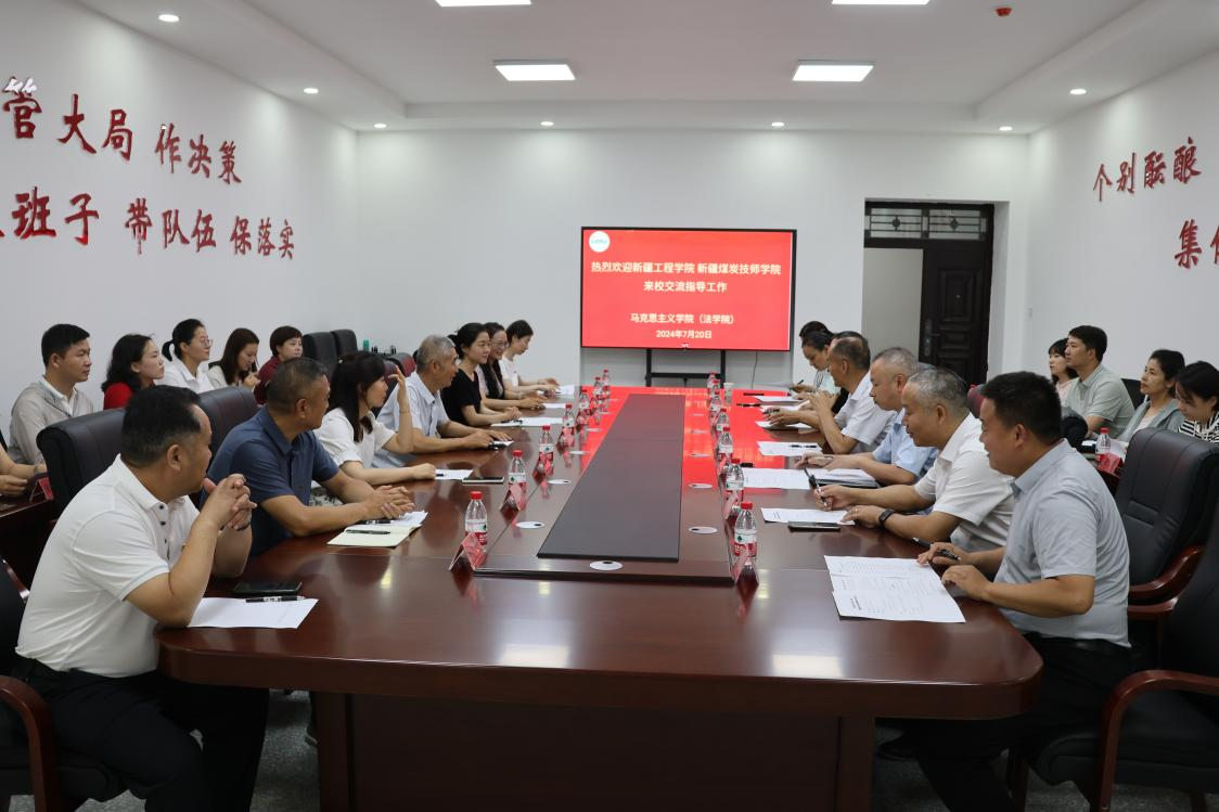 7月20日,新疆工程学院马克思主义学院院长骆新华一行来我院座谈交流,马克思主义学院(法学院)党委副书记、院长秦泽洪、马克思主义学院(法学院)党委副书记、纪委书记杨震出席座谈会,学院各系部教师参加座谈,座谈会由学院院长秦泽洪主持。