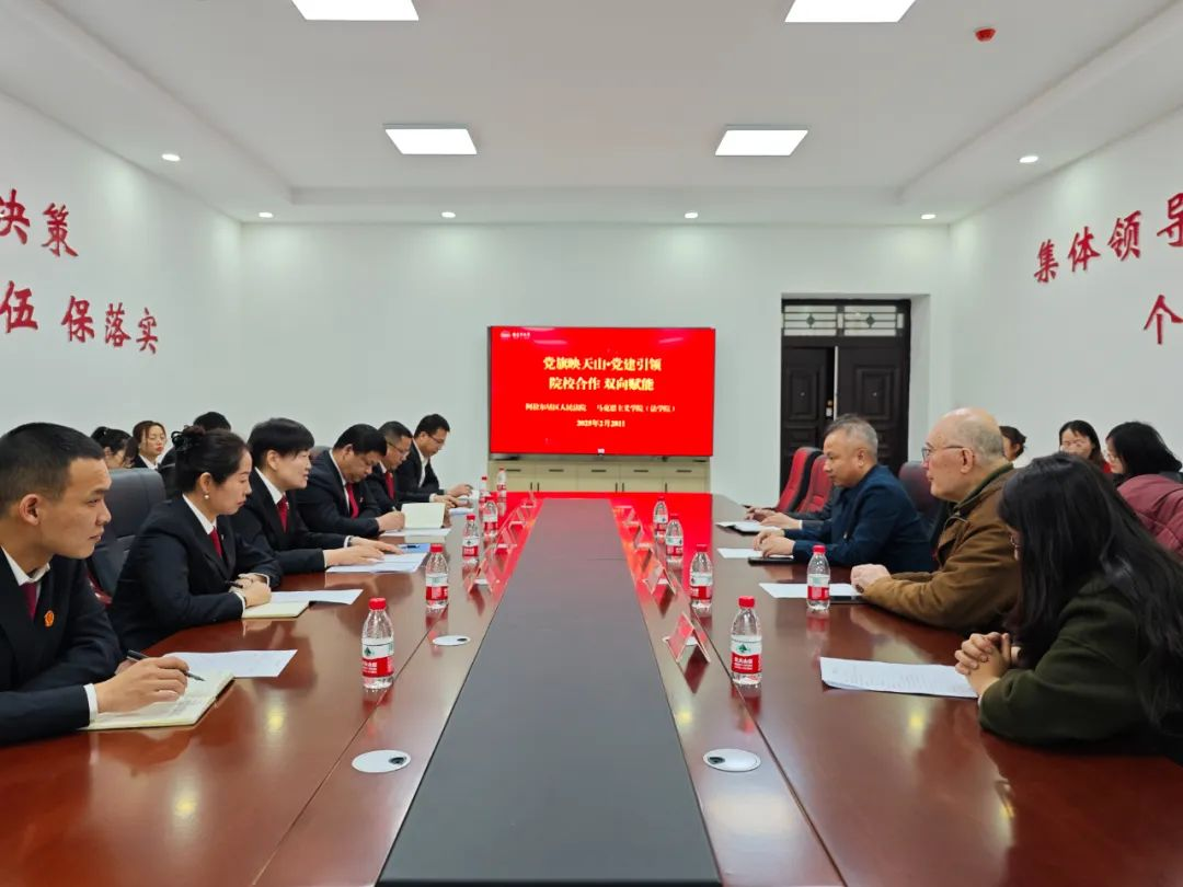 2025年2月28日下午15:30,塔里木大学马克思主义学院(法学院)成功举办了“党旗映天山·党建引领院校合作双向赋能”主题活动。此次活动旨在通过党建引领,进一步加强院校合作,推动法学教育与司法实践的双向赋能,提升法学人才培养质量。