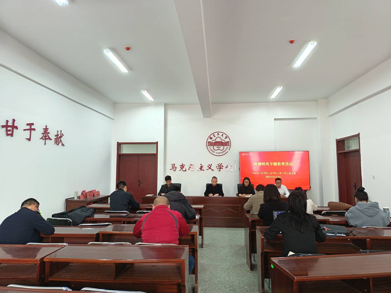 为深入贯彻落实立德树人根本任务,进一步强化教师职业行为规范,全面提升教师思想政治素质与职业道德水平,营造良好的育人环境。2025年3月19日,马克思主义学院(法学院)教工第五党支部于新文科楼329开展师德师风主题党日活动。