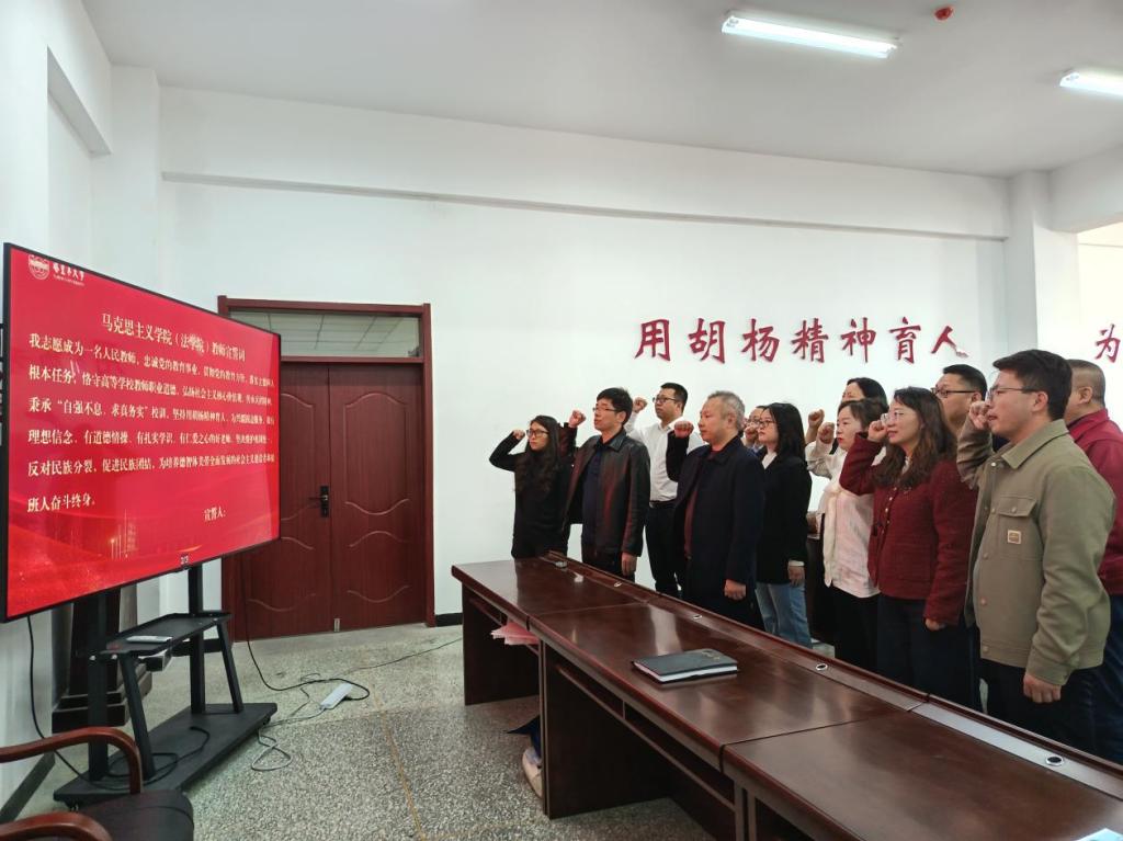 活动的最后一项议程是党支部全体教师进行庄严的师德宣誓。在学院领导的带领下,教师们整齐列队,郑重宣誓,宣誓仪式庄重肃穆,每一位教师都神情坚定,声音洪亮,表达着对教育事业的热爱和对师德师风的坚守。