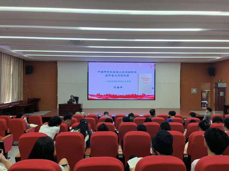 6月20日、21日马克思主义学院(法学院)邀请客座教授代金平教授为全院师生讲授“科学论战与哲学思维——从墨子号量子卫星说起”及“中国特色社会主义政治经济学若干重大问题思考——习近平经济思想学习有感”。