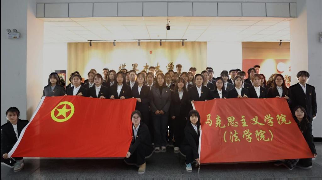 2025年12月11日,共青团马克思主义学院(法学院)委员会2025年下半年新团员接收仪式在新文科楼329会议室隆重举行。仪式由董文旭同学主持,学院团委书记芮雪、兼职副书记(学生)郭嘉妮、仉舜,优秀团员代表及全体新团员共同参与。