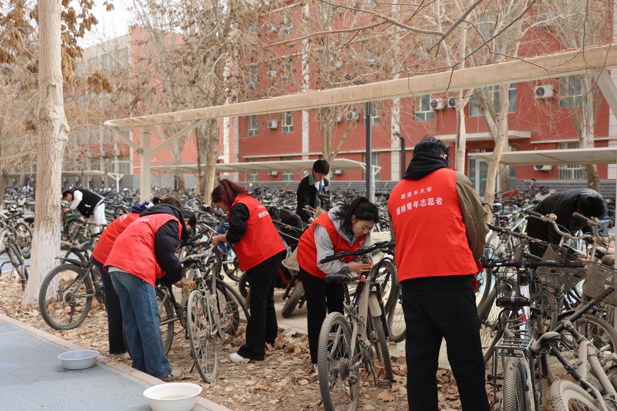 活动当天,志愿者们在明确岗位职责与服务要求后,迅速投入到洗车工作中,现场一派忙碌而有序。尽管需要自行携带抹布、盆子等工具,但志愿者们始终热情饱满、耐心细致,用实际行动为校园增添了一抹温暖的亮色。