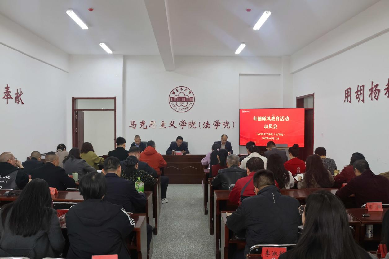 百年大计,教育为本;教育大计,教师为本。为进一步加强师德师风建设,落实立德树人根本任务,2025年3月12日,马克思主义学院(法学院)召开师德师风教育活动动员会,学院全体领导班子成员出席会议,学院全体教职工参加会议。