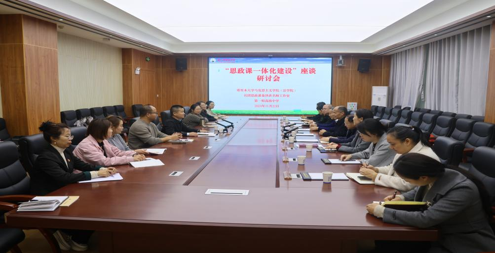 为落实立德树人根本任务,推动思政课建设高质量发展,塔里木大学马克思主义学院(法学院)积极探索大中小思政课一体化建设。2024年11月22日下午,马克思主义学院(法学院)党委副书记、院长秦泽洪,银龄学者、华中科技大学博士生导师张建林教授一行赴第一师高级中学开展“思政课一体化建设”交流研究活动。第一师高级中学校长肖锐、副校长黎正再、全体思政教课教师出席参加了此次活动。