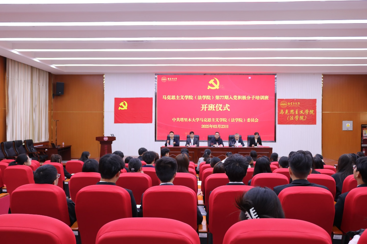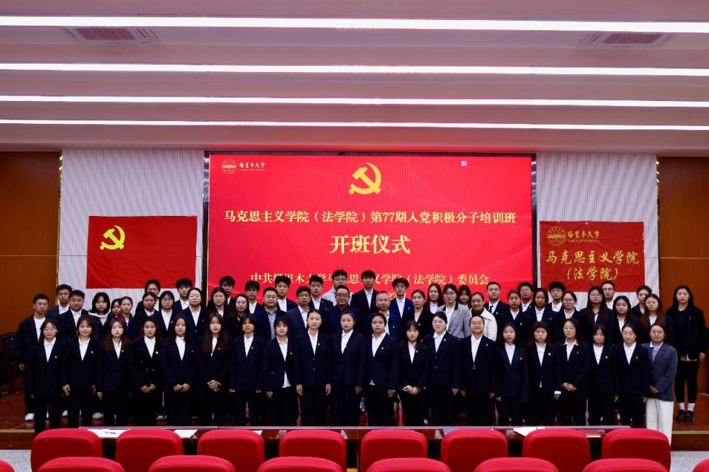 2025年3月23日,马克思主义学院(法学院)第77期入党积极分子培训班开班仪式在新文科楼504举行。学院党委书记王志刚,党委副书记、纪委书记杨震,党委委员、纪委委员、各党支部书记、教师代表出席,第77期全体57名入党积极分子参加,开班仪式由党委副书记杨震主持。