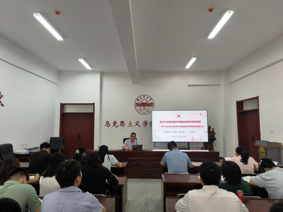为深入贯彻落实中央八项规定精神,全面从严治党,深化作风建设,永葆党的纯洁性、先进性。5月28日,马克思主义学院(法学院)党委书记王志刚为教工第三党支部及研究生党支部全体师生党员讲题为“新时代加强党的作风建设的锐利思想武器——学习习近平总书记关于加强党的作风建设的重要论述”的专题党课。 |