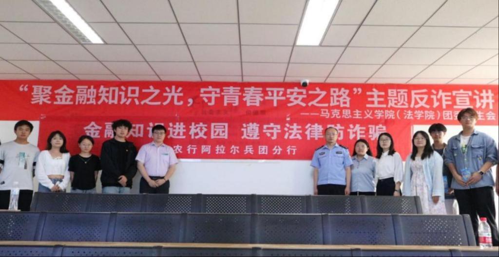 为增强学生金融安全意识,提升防范诈骗能力,2025年5月23日,马克思主义学院(法学院)举办“金融知识进校园,遵守法律防诈骗”主题讲座。此次讲座联合中国农业银行兵团阿拉尔分行与塔里木大学派出所共同举办。